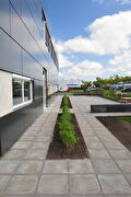 Voor de vestiging in Groningen hebben wij een ontwerp opgesteld en de bestaande buitenruimte aangepast aan de wensen van de gebruikers. Begin 2024 zijn we gestart met de aanleg, en inmiddels is het terrein al enkele maanden in gebruik. Een bijzonder detail is dat het logo van Delftechniek fraai is verwerkt in het straatwerk met betonnen zitelementen.